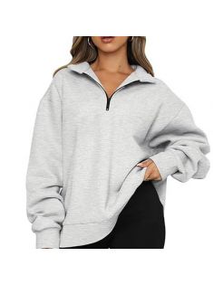 Trendy Queen Womens Oversized Sweatshirts Hoodies Half Zip Pullover Fall Fashion Outfits 2024 Y2k Clothes
