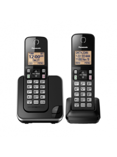 Expandable Cordless Phone System with Amber Backlit Display – 2 Handsets – KX-TGC352B (Black)