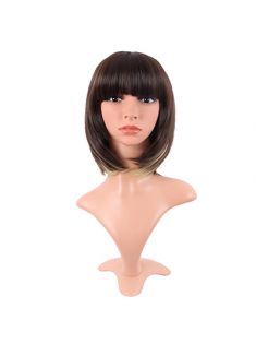 MapofBeauty 12 Inch /30 cm Fashion Lady Short Straight Synthetic Flat Bangs Bob Wig (Brown Mixed Blonde)
