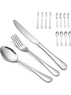 Stainless Steel Knives Spoon Forks Set of 12, 4-Piece 9" Dinner Knives + 4-Piece 7.3" Table Spoons + 4-Piece 7.3" Salad Forks, Mirror Polished & Dishwasher Safe Silverware Set