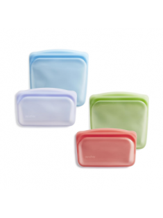 Reusable Silicone Storage Bag, Food Storage Container, Microwave and Dishwasher Safe, Leak-free, 4-Pack Lunch/Travel Bundle, Rainbow