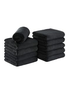 Arkwright Microfiber Coral Fleece Salon Towels - (Pack of 10) Bleach Safe Resistant, Absorbent Hair Drying Towel Set, Perfect for Resort, Hotel, and Spa, 16 x 27 in, Black