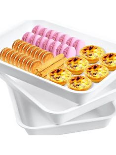 AQSXO White Serving Trays, Reusable Plastic Serving Platters, Set of 6, Versatile White Trays for Kitchen, Pantry & Party Foods, Ideal for Fruits, Snacks, Cookies & Desserts.