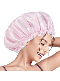 Aquior Shower Caps, Reusable Shower Cap for Women, Double Layer Waterproof Hair Cap, Large Size for All Hair Lengths,for Girls Spa Home Salon Use (Pink Cloud)