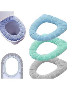 Bathroom Soft Thicker Warmer Stretchable Washable Cloth Toilet Seat Cover Pads, 3PCS (Blue, Pink, Grey)