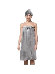 Bath Wrap Towels for Women, Microfiber Wearable Bath Towel and Head Cover for Bathroom Shower, Adjustable Soft Bathroom Shower Wrap Towel with Velcro, Absorbent (Grey, XL)