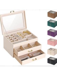 BALEINE Jewelry Box with Glass Lid, PU Jewelry Holder Organizer for Big Small Jewelry, Jewelry Storage Case