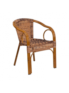 Series Dark Red Bamboo-Aluminum Indoor-Outdoor Restaurant-Patio Chair with Burning Brown Rattan