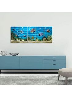 SYGALLERIER School Of Fish Metal Wall Art Handcrafted 3D Coastal Aluminum Artwork Modern Abstract Sea Styles Wall Accent in Blue Green Silver Color for Living Room Bedroom Bathroom Decor