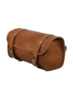 Genuine Goat Leather Vintage Motorcycle 2 Strap Buckle Closure Tool Brown Bag Quick Release Clasp REINFORCED for handlebars,Forks, Sissy Bar - 10" Christmas New Year Gift Idea
