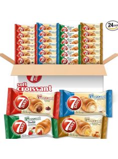 7Days Soft Croissant Variety Pack (24 Count), 6 Chocolate, 6 Vanilla, 6 Strawberry Vanilla, 6 Caramel, Breakfast Pastry, Individually Wrapped On The Go Snack (Pack of 24)