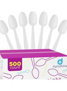 500 Count – Heavyweight Disposable White Plastic Tea Spoons | Dessert Spoons Plastic | Great for Celebrations, Parties, Travels, Events, and Everyday Use