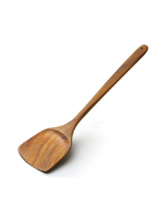 Wooden Spatula,15.3 Inch Flat Wood Wok Spatula,Wood Kitchen Utensils for Cooking,Long Handle Turner Coated Natural Resin, Handmade Kitchenware