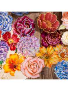 Large Size Flower Stickers with Gold Holographic Outlines, Glitter Shiny Floral Waterproof Decorative Decals for Scrapbooking Supplies Junk