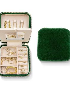 Benevolence LA Plush Velvet Jewelry Box | Travel Jewelry Case Organizer with Mirror | Featured in Oprah's Favorite Things | Best Gifts For Daughter, Girlfriend, Mom | Gifts For Her - Emerald