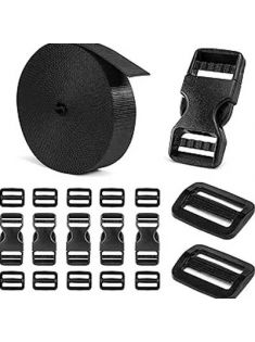 BEYOURD Buckles and Straps Set 1": 6 Yards of Thick Nylon Webbing, 6-Pack Heavy Duty Adjustable Quick Side Release Plastic Buckles, 12 Tri-Glide Slide Clips, Black