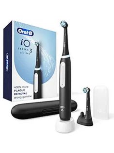 Oral-B iO Series 3 Limited Rechargeable Electric Powered Toothbrush, Black with 2 Brush Heads and Travel Case - Visible Pressure Sensor to Protect Gums - 3 Modes - 2 Minute Timer