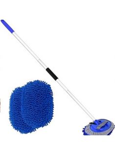 62" Car Wash Brush with Long Handle and Car Wash Brush Microfiber Car Cleaning Brush Kit for Car RV Truck Cleaning 1 Chenille Scratch-Free Replacement Head with Aluminum Alloy Pole (Blue)