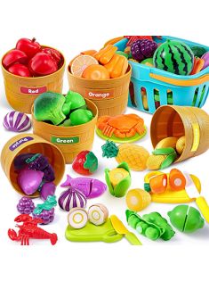 Color Sorting Play Food Set - Learning Toys for Boys & Girls, Cutting Food Toy, Kitchen Accessories for Kids, Toddler Sorting /Fine Motor Skills Toy, Daycare/Preschool Educational Toys