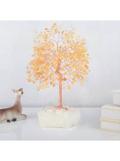 MASGEMES Gemstone Crystal Tree of Life,Natural Citrine with Row Clear Quartz Base,Chakra Healing Crystals Positive Energy Fengshui Decor Bonsai Money Tree,Home Decor Gift Size 8.5"-9"