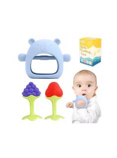 Baby Teething Toys, 3 PCS Teethers Set for 0-6, 3-6 Months & 6-12 Months, Baby Essentials, Infant Toys, Baby Chew Toys Set Food Grade Silicone, Bear Shape Teething Toy Fruit Shape Teether Set