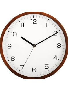 12 Inches Round Wooden Wall Clock Battery Operated Silent Non-Ticking,Metal Pointer&Glass Cover, for Office Kitchen Bedroom Classroom&Living Room, Brown