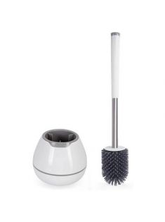BOOMJOY Toilet Brush and Holder Set, Silicone Toilet Bowl Cleaner Brush, Bathroom Cleaning Bowl Brush Kit with Tweezers, Bathroom Accessories with Aluminum Handle - White