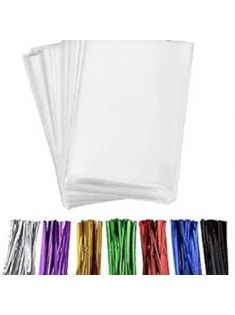 200 Pcs 10 in x 6 in(1.4mil.) Clear Flat Cello Cellophane Treat Bags Good for Bakery, Cookies, Candies,Dessert with five random color Twist Ties!