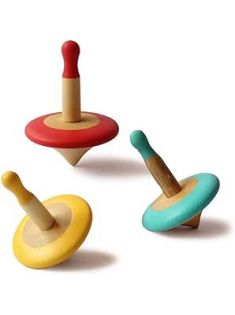 Shumee Handmade Wooden Set of 3 Spin Tops(Red, Blue, Yellow)| Colorful| 100% Child Safe| Gyroscope Fidget Spinner |Novelty Spinning Tops | Sensory Toys |Birthday Party Favors|Classic Wooden Trompos