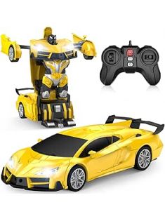 Remote Control Car,Transform Robot RC Cars with Cool LED Headlights, 2.4Ghz Toys Car with 360 Degree Rotation and One-Button Deformation, Christmas Birthday Gifts for Boys Girls(Yellow)