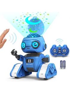 Robot Toys for Boys and Girls, Rechargeable Remote Control Robot with Auto-Demonstration, Light Projection, Dance Moves, Music, and Gesture Sensing –Toy Robot Gifts for 3,4,5,6 Year old Boys (Blue)