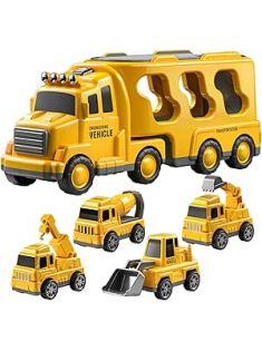 TEMI Construction Truck Toys for 3 4 5 6 7 Years Old Boys - Kids Toys Toddler Car Toys for Toddler Boys Ages 3-5, Toy for Toddlers 1-3, 3 4 5 Year Old boy Gifts for Kids 3-5 3-9