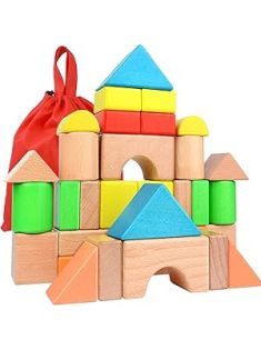 Large Wooden Building Blocks Set - Educational Preschool Learning Toys with Carrying Bag, Toddler Blocks Toys for 3+ Year Old Boy and Girl Gifts