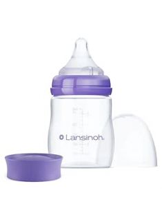 Lansinoh Anti-Colic Baby Bottle for Breastfeeding Babies, 5 Ounces, 1 Count, Includes 1 Slow Flow Nipple, Size S and Stackable Lid