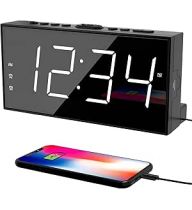 PPLEE Alarm Clock for Bedroom, 2 Alarms Loud LED Big Display Plug in Simple Basic Digital Clock with USB Charging Port, Adjustable Volume, Dimmable, Snooze for Deep Sleepers Kids Elderly Home Office