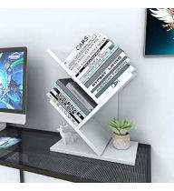 Godferyxin Tree Bookshelf, 3-Tier Wood Small Bookshelf and Mini Book Shelf for Office, Home or School Desk Book Shelf for for Displaying Books, CDs, Magazines Wood Storage Rack-Whit