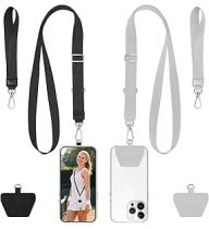 takyu Phone Lanyard, 2 Pack Crossbody Anti-Drop Neck and Wrist Strap with 2 Pcs Tether Patches, Secure Hands-Free Compatible for iPhone Samsung Perfect for Nurses, Teachers, Travel, Hiking Black+Gray