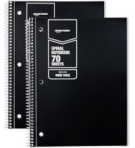 Amazon Basics Wide Ruled Spiral Notebook, 70 Sheets, 8" x 10-1/2", Black, 2 pack