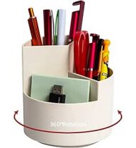 Desk Pencil Pen Holder, 3 Slots 360-Degree Spinning Organizers, Desktop Storage Stationery Supplies, Cute Cup Pot for Office, School, Art Supply, Kids - White