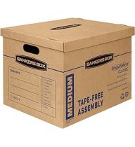 Bankers Box Medium Classic Moving Box 8 Pack, Reinforced Handles, Tape-Free Assembly, Box with Lid, 19-in x 14.5-in x 15.5-in (7717201)