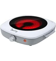 Davivy Single Burner Hot Plate with Sturdy Handle, 7.9 inch Ceramic Glass Cooktop, 1200W Infrared Cooker, Compatible Of All Cookware, White