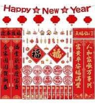 86Pcs Chinese New Year Decoration 2026 Chinese Couplets Chunlian Red Envelopes Red Lantern Lucky Hanging Ornaments Banner Fu Character Window Stickers for Spring Festival Lunar New Year Party Decor