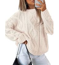Trendy Queen Women's Oversized Cable Knit Crewneck Sweaters