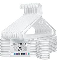 NEATERIZE Ultra Heavy Duty Plastic Clothes Hangers - White - Durable Coat, Suit and Clothes Hanger. Perchas De Ropa (24 Pack - White)
