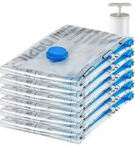 Amazon Basics Vacuum Compression Space Saving Storage Bags with Hand Pump for Clothes Packing, Jumbo, Clear, Pack of 6