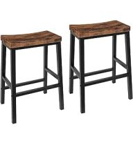 HOOBRO Bar Stools, Set of 2 Bar Chairs, 23.6 Inch Saddle Stools, Kitchen Counter Seat with Footrests, Industrial Barstools for Dining Room, Kitchen, Counter, Rustic Brown and Black BF02MD01