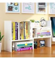 Desktop Shelf Organizer, Adjustable Wood Office Storage Rack, Counter Display Small Bookshelf for Home/Office/School(White)