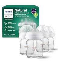 Philips Avent Natural Glass Baby Bottles with Natural Response Nipples (Slow Flow, Flow 2), 4oz, 4-Pack, SCY910/04