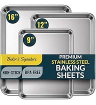 Baker’s Signature Stainless Steel Cookie Sheet Pan, Stainless Steel Baking Sheet Set of 3, Mirror Finish, Non-Stick, Rust Resistant, BPA Free, Dishwasher Safe, 9/12/16 Inch