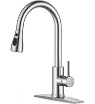 FORIOUS Kitchen Faucets with Pull Down Sprayer, Brushed Nickel, High Arc Single Handle Classic Stainless Steel Sink Faucet 1 or 3 Hole, Suitable for Farmhouse Camper Laundry Rv Bar